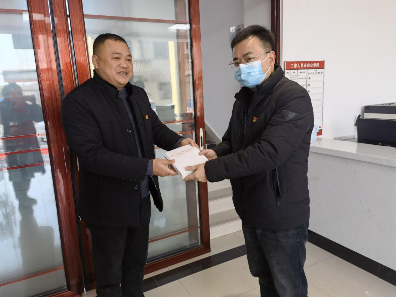 了解群眾心聲,主動(dòng)為幫扶對(duì)象做實(shí)事。會(huì)后,支部書(shū)記楊濤向橋邊村贈(zèng)送了80本《中國(guó)共產(chǎn)黨第十九屆中央委員會(huì)第六次全體會(huì)議公報(bào)》手冊(cè),幫助橋邊村黨員進(jìn)一步學(xué)習(xí)十九屆六中全會(huì)精神。