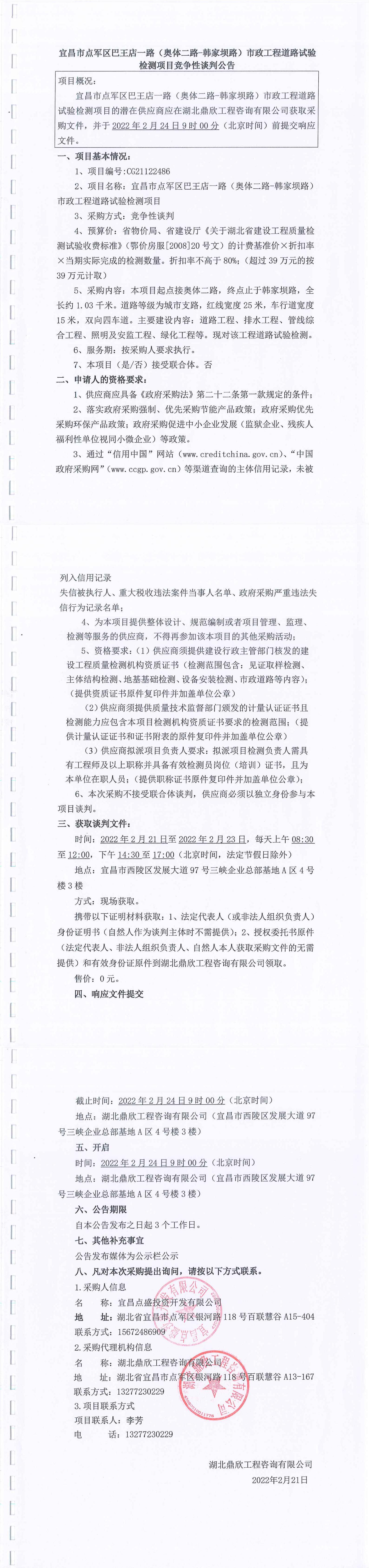 宜昌市點(diǎn)軍區(qū)巴王店一路(奧體二路-韓家壩路)市政工程道路試驗(yàn)檢測(cè)項(xiàng)目談判公告