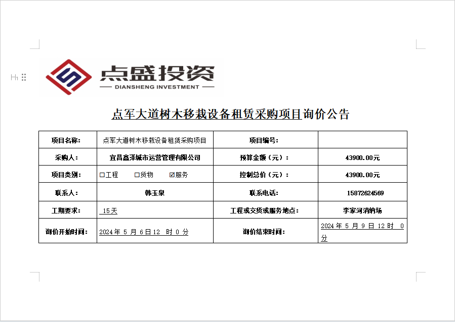發(fā)布時間:2024/5/6 來源:宜昌點盛投資開發(fā)有限公司 訪問:300