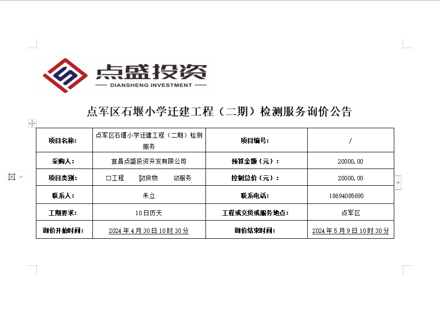發(fā)布時間:2024/4/30 來源:宜昌點盛投資開發(fā)有限公司 訪問:979