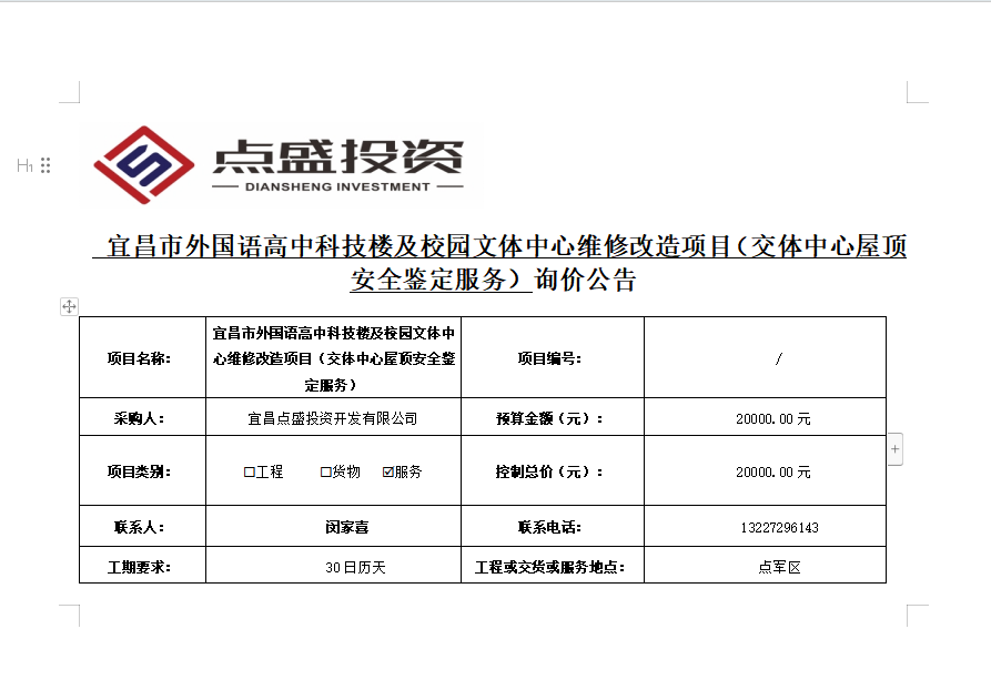 宜昌市外國語高中科技樓及校園文體中心維修改造項目(交體中心屋頂安全鑒定服務(wù))詢價公告
