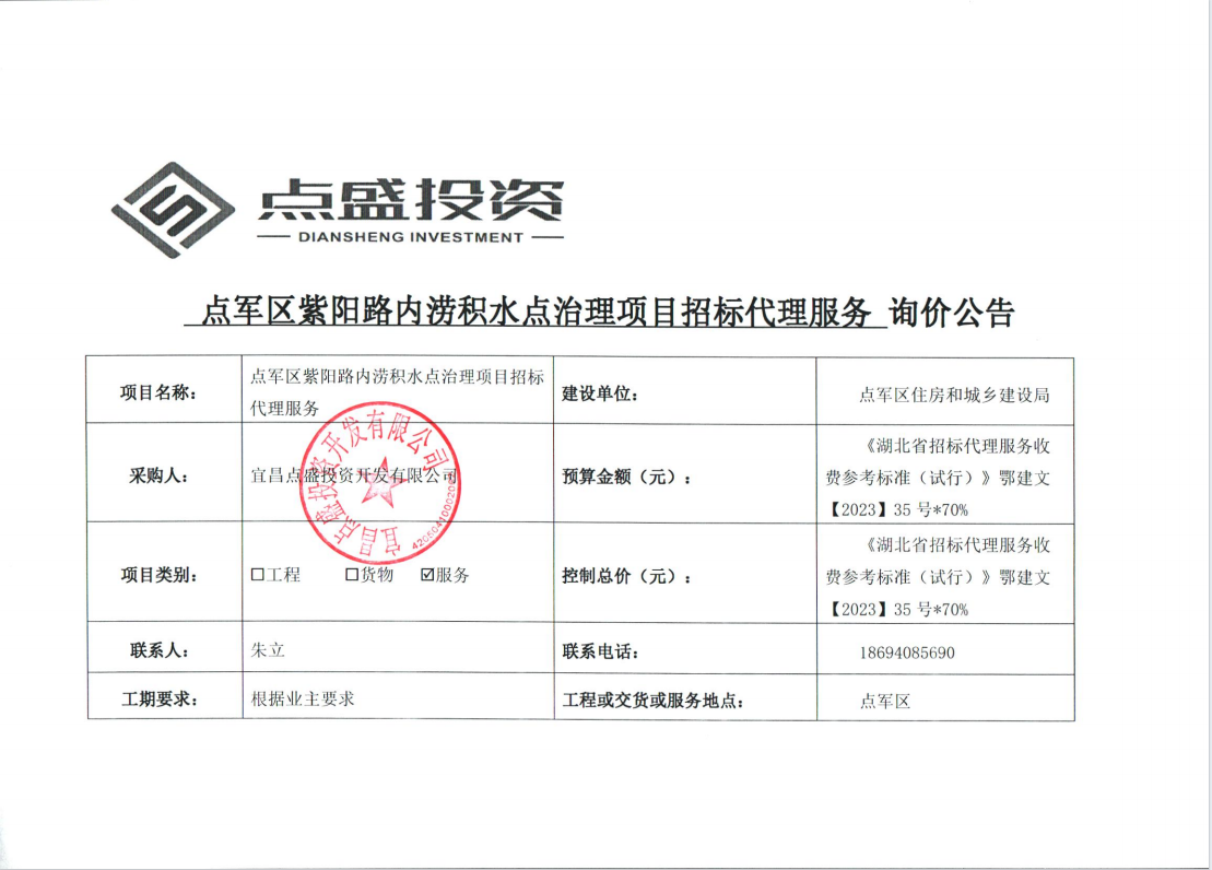 點(diǎn)軍區(qū)紫陽路內(nèi)澇積水點(diǎn)治理項(xiàng)目招標(biāo)代理服務(wù)詢價(jià)公告