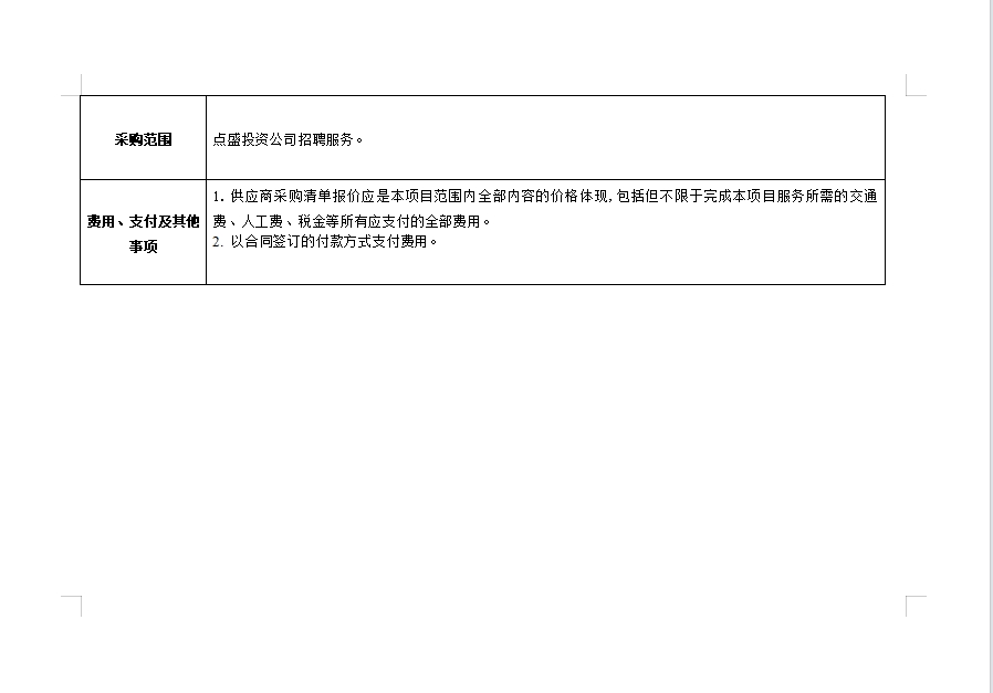 點(diǎn)盛投資公司招聘服務(wù)詢價公告